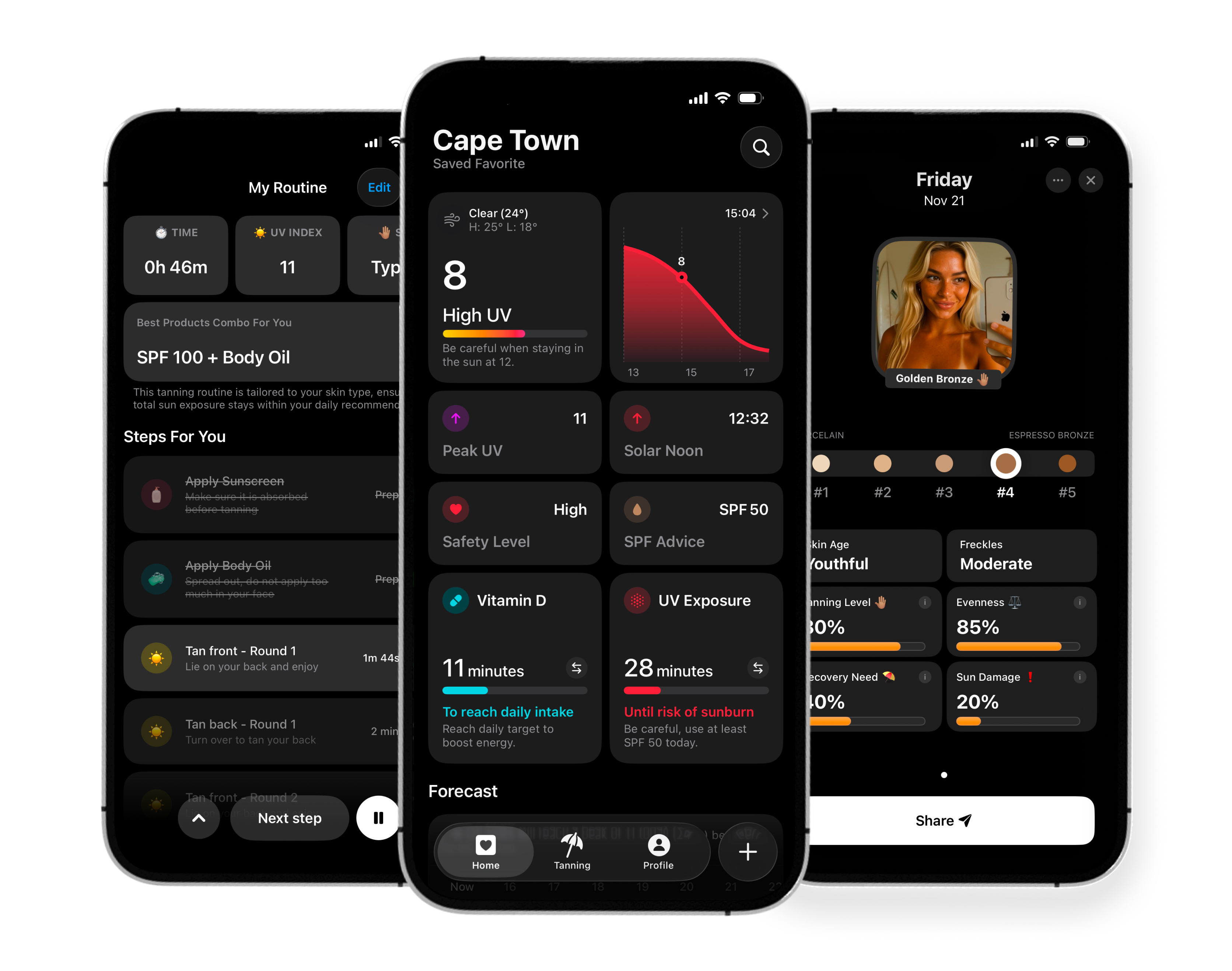 Meet SunSafe, the #1 app for safe tanning. Personalized tanning routines, skin exposure tracker and much more.